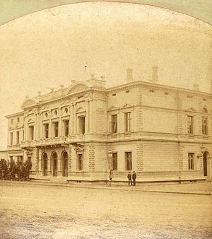 | + | [[Billede:kongejub1.jpg|300px|thumb|right|Vejle Teater opført 1884 med Ludvig A. Petersen som arkitekt, Jernbanepladsen 4, ca. 1890]] | ||