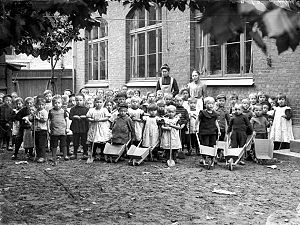 | + | [[Billede:Børneasyl1.JPG|300px|thumb|right|Dagmar-Asylets børn i gården, 1905]] | ||