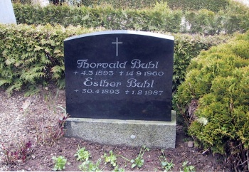 | + | [[Fil:Hoejen_167g.jpg|350px|thumb|center|Thorvald og Esther Buhls gravsten på Højen kirkegård. Foto: Torben Bank Sørensen, www.dk-gravsten.dk]] | ||