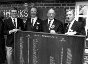 | + | [[Fil:b60084a.jpg|300px|thumb|right|Fra venstre Per Værndal, Dansk Golf Unions formand, derefter er det stifterne af museet, værktøjsmager Jan Skanderup, direktør Søren Berggreen og læge Erik Halling ved Danmarks Golfmuseums åbning i Vejle, 10. maj 1992. ]] | ||