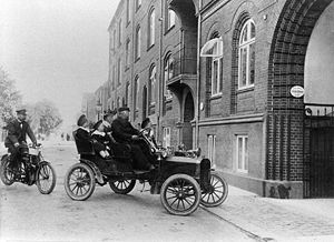 Frits Jensen på motorcykel ud for Langelinie 18, 1908