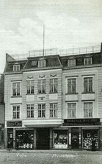 Bygning på Nørregade 6, opført i 1902 af blikkenslager Hans Glud, der selv havde en mindre forretning i en del af underetagen, ligeledes havde Hvidehus Boglade til huse i bygningen.