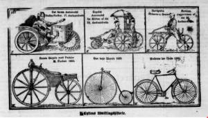 Tyskeren Philipp Moritz Fischer (1812-90) opfandt allerede i 1853 den pedaltrukne cykel. Der gik flere årtier inden den udkonkurrerede løbecyklen. Endnu i 1882 fandtes der velocipeder i Vejle (VAF 30.11.1882 auktion på Brandts Hotel), og i 1883 brækkede en vejlensisk dreng benet under øvelse på en velocipede. Bicykler og Tricykler var imidlertid nu ved at erstatte løbecyklerne. Livsfarlige løbskkørsel var et ikke usædvanligt syn på Vejles brolagte gader, nu truede de nye bi- og tricyklisterne med at skræmme endnu flere heste. Vejle Amtsråd følte det nødvendigt at gribe ind. På amtsrådsmødet den 25. maj 1883 behandlede medlemmerne et forslag fra herredsfoged Monrad, om hvorvidt bi- og tricykleryttere skulle være pligtige til at holde aldeles stille i passende afstand, når de mødte hestevogne og ridende. Samtidig skulle de ringe uafbrudt med ringeklokker, så de vejfarende blev denne fare bevidst. På stærkt befærdede offentlige veje såsom Grejsdalsvej skulle cyklerne (også kaldet velocipederne) helt forbydes. Fire af de seks stemmeberettigede gik i første omgang ind for forbuddet mod cyklister på offentlig vej, men så ombestemte to af dem sig.