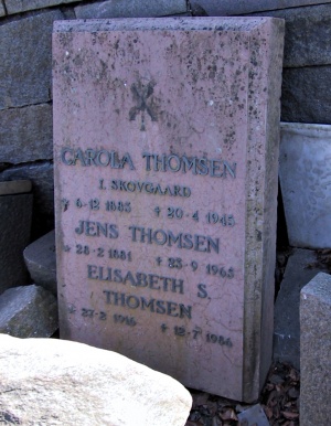 Jens Thomsen var gift med Dorthea Karoline Jensen Skovgaard [kaldet Karola]. Hun blev født den 6. december 1885 i Sindbjerg sogn og døde den 20. april 1945 i Skyttehusgade 3 i Vejle. Hun blev begravet på Vejle østre kirkegård.