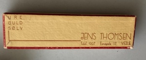 Jens Thomsen var i lære fra 1896 hos urmager Nicolaj Jensen i Vejle. Han var svend 2 år hos urmager Niels Jørgen Melgaard i Holstebro og 7 år i Hannover i Tyskland. Han åbnede sin første forretning den 12. oktober 1909 i Vissingsgade 7. Senere havde han forretning i Torvegade 17. I perioden 1923-1937 var hans indregistrerede varemærke for guld- og sølvvarer ”J. Thomsen”.