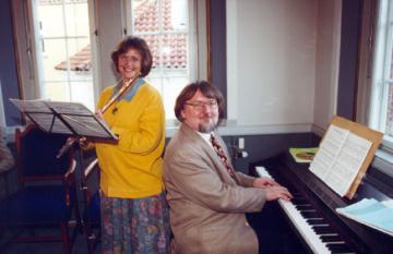 Lise og Willy Stolarczyk underholder på fløjte og klaver i amtsrådssalen på Vejle Rådhus. 1996
