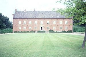 Anno 1585 lod ieg Karen Gyldenstiern sallig Hollger Rosenkrantzes thil Boller dete Hvss opbygge i mit Encke Seede thil mine tho Sønner Otte Christoffer Rosenkrans och Frederich Rossenkrantzis Beste.