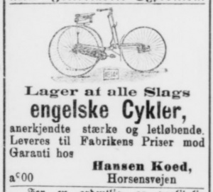 Adresseavisen (28.01.1898 – Hansen Koed fallit) Berlingske Tidende (25.02.1902 & 22.12.1904 – Manson Cykle-Co.), Fredericia Social-Demokrat (01.04-12.04.1899 – J. Thomsen), Jylland Posten (28.04.1890 – Vejle Cykle-Klub), Social-Demokraten (30.06.1925 - Hansen Koed gift, 23.07.1931 - Hansen Koed død), Vejle Amts Avis (22.07.1884 Oscar E. Christensen), Vejle Amts Folkeblad (20.02.1884 – amtsrådsmøde, 26.11.1887 – Mikkel Knudsen, 04.03.1891 & 06.04.1891 & 16.05.1891 & 20.05.1891 Hansen Koed, 24.04-27.04.1896 - ny cykelklub, 05.04.1899 – Vejle Cykle-Forretning, 01.03.1915 Mogens Kastberg-Andersen, 06.12.1916 - Hansen Koed gift), Aarhus Stiftstidende (10.08.1912 - Hansen Koed gift).