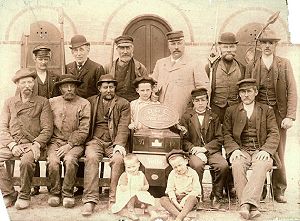 Vejle Gasværks personale 1898. Victor Schrøder står som tre fra højre i bageste række
